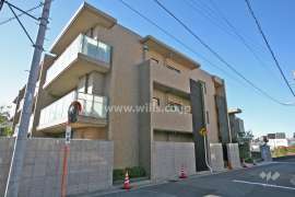 施工会社は前田建設工業株式会社。建物は鉄筋コンクリート造で、外壁はベージュのタイル貼り。フロアは3階までありますが、建築基準法上は地上2階地下1階建となっています。隣り合う住戸同士のバルコニーをずらした雁行設計が印象的な外観となっています。1~3号棟、5~8号棟の計7棟で構成されており、総戸数は38戸。1号棟は敷地東側にある棟で、棟戸数は12戸の最大戸数の棟となります。各住戸の専有面積は90~100㎡台とゆとりある広さが特徴。エレベーター、オートロックシステム、宅配ボックスはありません。敷地内駐車場は北側に設けられており、すべて平面式。全戸数分の台数が確保されています。(屋外28台、屋内10台)なおペットの飼育ができます(但し管理規約により一定の制限有り)。